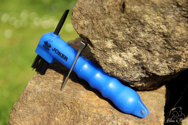 Da Blue Barhuf läuft, bleibt es nicht aus, dass sich unterwegs ab und zu mal kleinere Steine irgendwo festsetzen. Lange Zeit wurden Hufkratzer bei mir immer etwas vernachlässigt, meist bekommt man sie ja sogar geschenkt. Aber mit dem Hufkratzer von Haas bekomme ich in 95% der Fälle alle Steine etc. mühelos aus dem Huf entfernt. Mit anderen Hufkratzern war das durchaus etwas schwierig, gerade in kleinen Ecken.