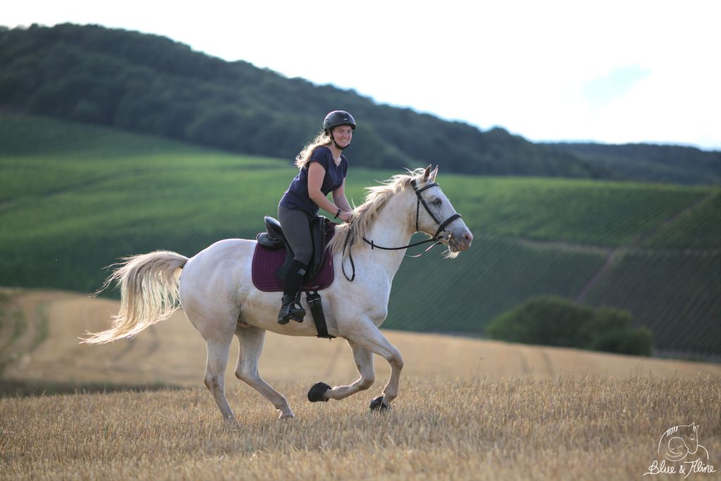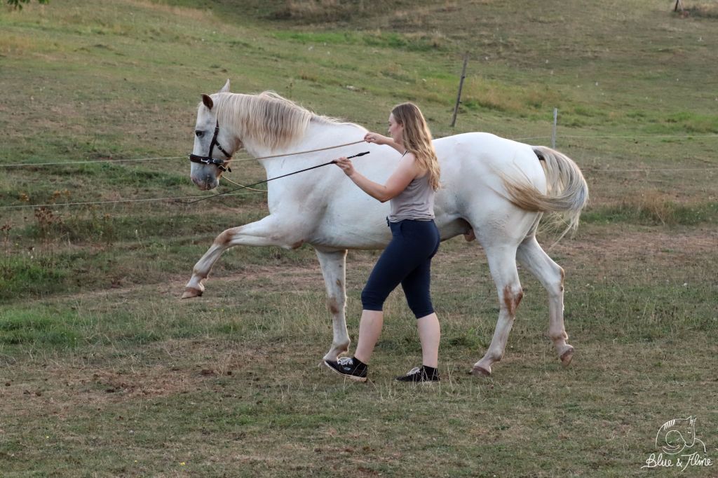 Im Großen und Ganzen ist das alles eine Gefühlssache und ich entscheide spontan. Anfangs ist es mir wahnsinnig schwer gefallen da eine gewisse Routine rein zu bekommen. Routine ist bei Arthrose natürlich grundsätzlich schwer möglich. Aber irgendwie will man nichts falsch machen und so war ich anfangs wirklich verunsichert. Im Prinzip das, wo ich auch am Anfang am meisten Angst vor hatte. Wenn das Pferd dann mal lahmt kann Bewegung helfen. Einige Leute können das glaube ich nicht verstehen und denken dann: „Wie kann man nur ein lahmes Pferd reiten/bewegen“. Fakt ist aber einfach, dass man einem Arthrosepferd keinen Gefallen tut, wenn man das Training nicht einfach fortsetzt. Ich achte darauf ob Blue etwas unangenehm findet, aber ich bin da deutlich selbstsicherer geworden. Ich glaube ich weiß ganz gut was Blue braucht und ich würde auch nie etwas tun was ihm schadet. Trotz allem ist „Bewegung, Bewegung und noch mal Bewegung“ am wichtigsten für ein Pferd mit Arthrose. Wobei eine Überbelastung natürlich auch nicht gut ist, hier muss man einfach das richtige Maß finden.