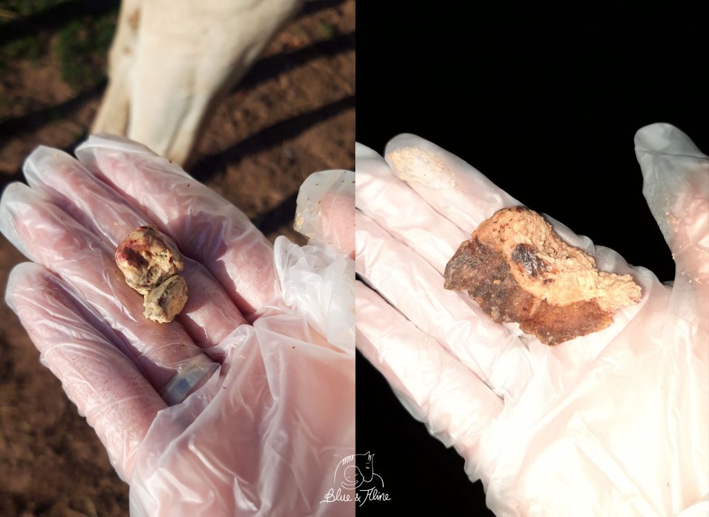Ich finde übertriebenes Putzen und Sauberkeit beim Pferd (egal in welchem Bereich) nicht gut. Manchmal ist der Schaden höher als der Nutzen. Aber trotzdem musste ich in den letzten Jahren feststellen, dass man gerade beim Wallach doch ein Auge auf den Schlauch bzw. die Schlauchtasche haben sollte. Bei Blue habe ich vor allem gemerkt, dass mit zunehmendem Alter doch öfter mal etwas Hilfe erforderlich ist. Denn ich muss zugeben, dass ich jahrelang auch nicht so genau danach geguckt habe, bis Blue dann irgendwann mal Probleme hatte. Denn es bilden sich Smegmasteine (auch Eichelsteine genannt) und diese können sehr schmerzhaft sein. Die Ablagerungen bestehen aus abgestorbenen Hautzellen, Drüsensekret und Urin- und Spermaresten.